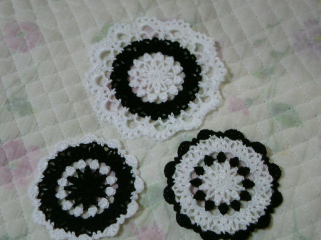 下の2枚がコースターで、上のがちょっとだけ大きめのドイリーです。