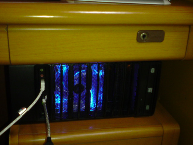 横置きはかなり不安もありましたが、大丈夫だろうということで机の空いたスペースに入れ込んでみました。